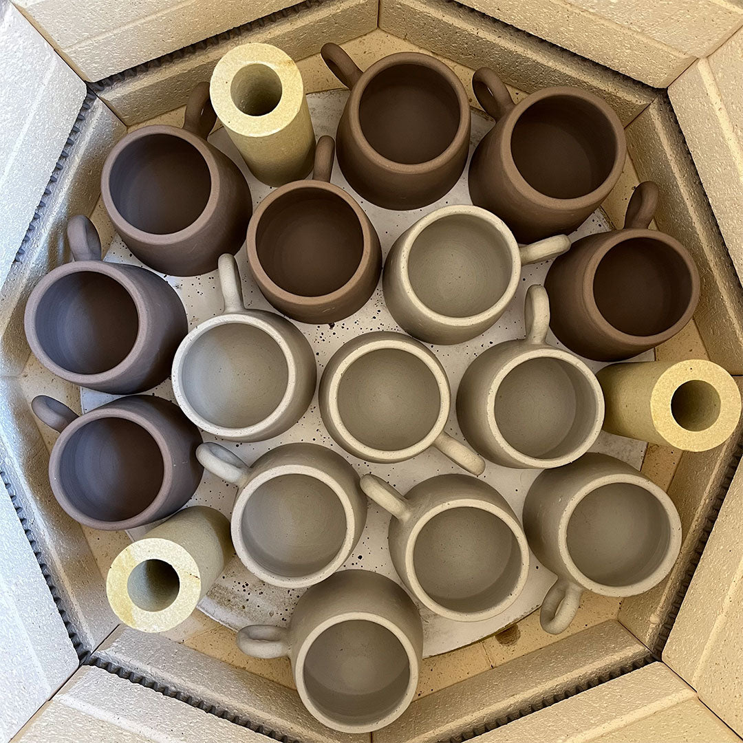 Cada taza se crea en el torno de alfarero, se moldea a mano y se deja secar lentamente a temperatura ambiente durante unos días.